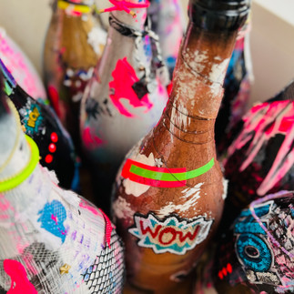 Gemeinsam mit dem Weingut Balthasar Ress veredeln sie acht Methusalem-Flaschen (6 Liter) erlesenen Rheingauer Weins zu einzigartigen Kunstobjekten. Der Erlös unterstützt erneut